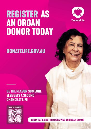 DonateLife Week poster – Aunty Pat, donor family – Copy